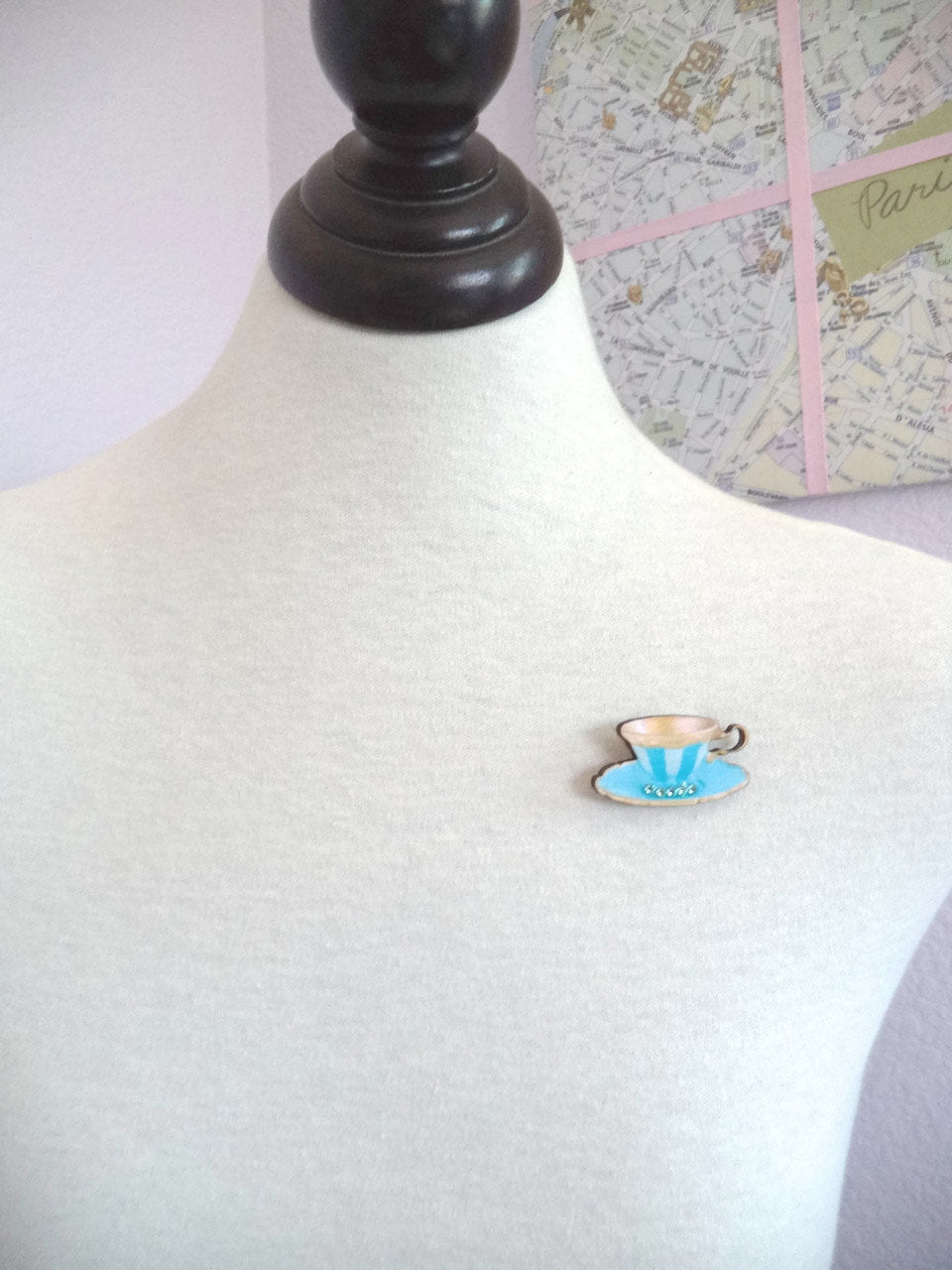 Alice in Wonderland Wood Stripe Teacup Brooch