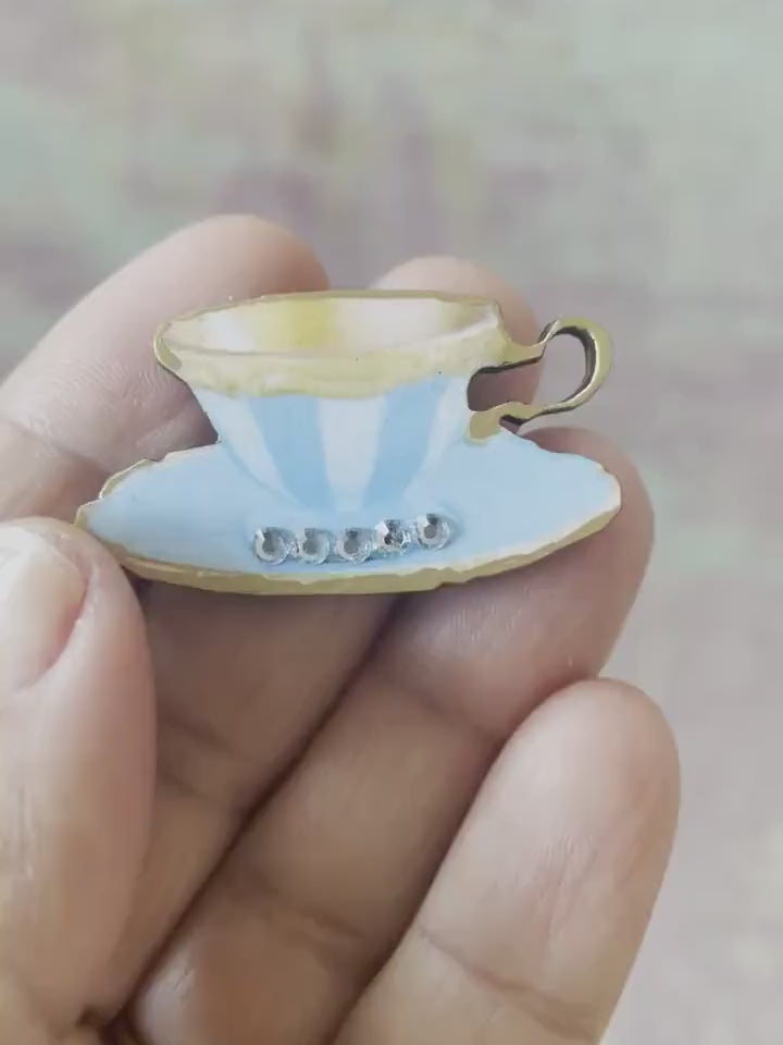 Each charm measures 1.5 inches in size and is varnished for a polished finish. It is equipped with a silver-tone pin, making it easy to attach to your clothing or accessories. With its distinctive design and attention to detail, the teacup is a delightful addition to any jewelry box.