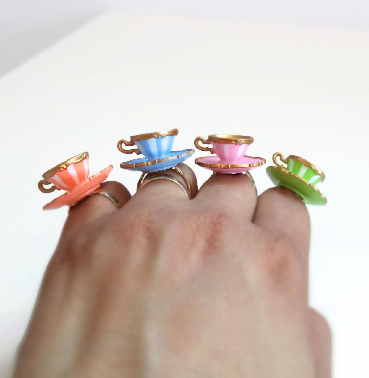 I have added bling to tiny plastic teacups and saucers and turned them into ring-worthy miniatures in a delightful way. The gold tone adjustable rings provide a lovely touch and allow for customization to fit different finger sizes. These charming tea-themed rings would make for wonderful conversation starters and memorable gifts for tea lovers or as party favors at tea parties.