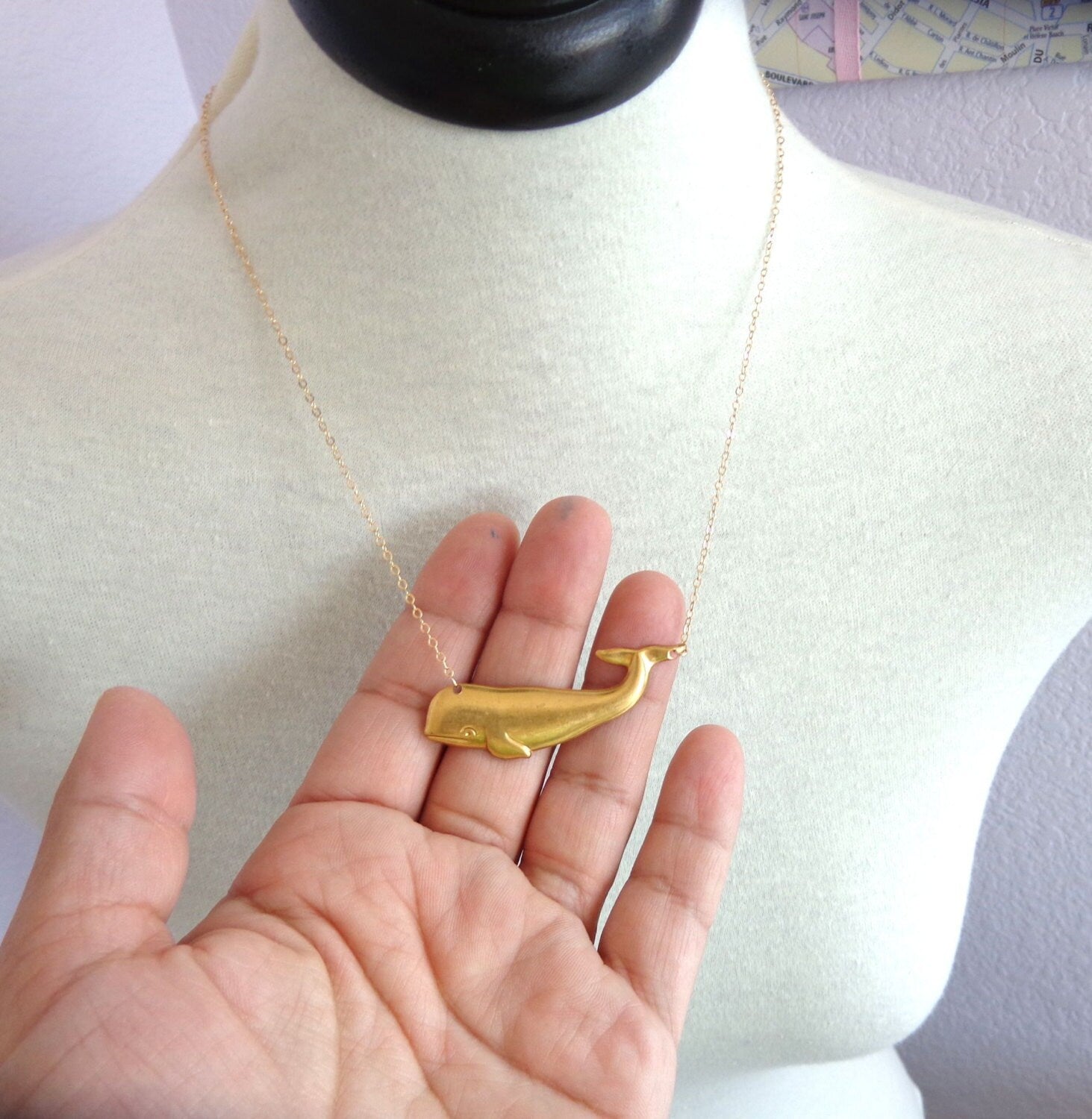 As the whale pendant is made from vintage brass, it's important to note that there may be variations in the patina due to the nature of the vintage materials. This unique aspect adds character and individuality to each necklace, making it even more special.