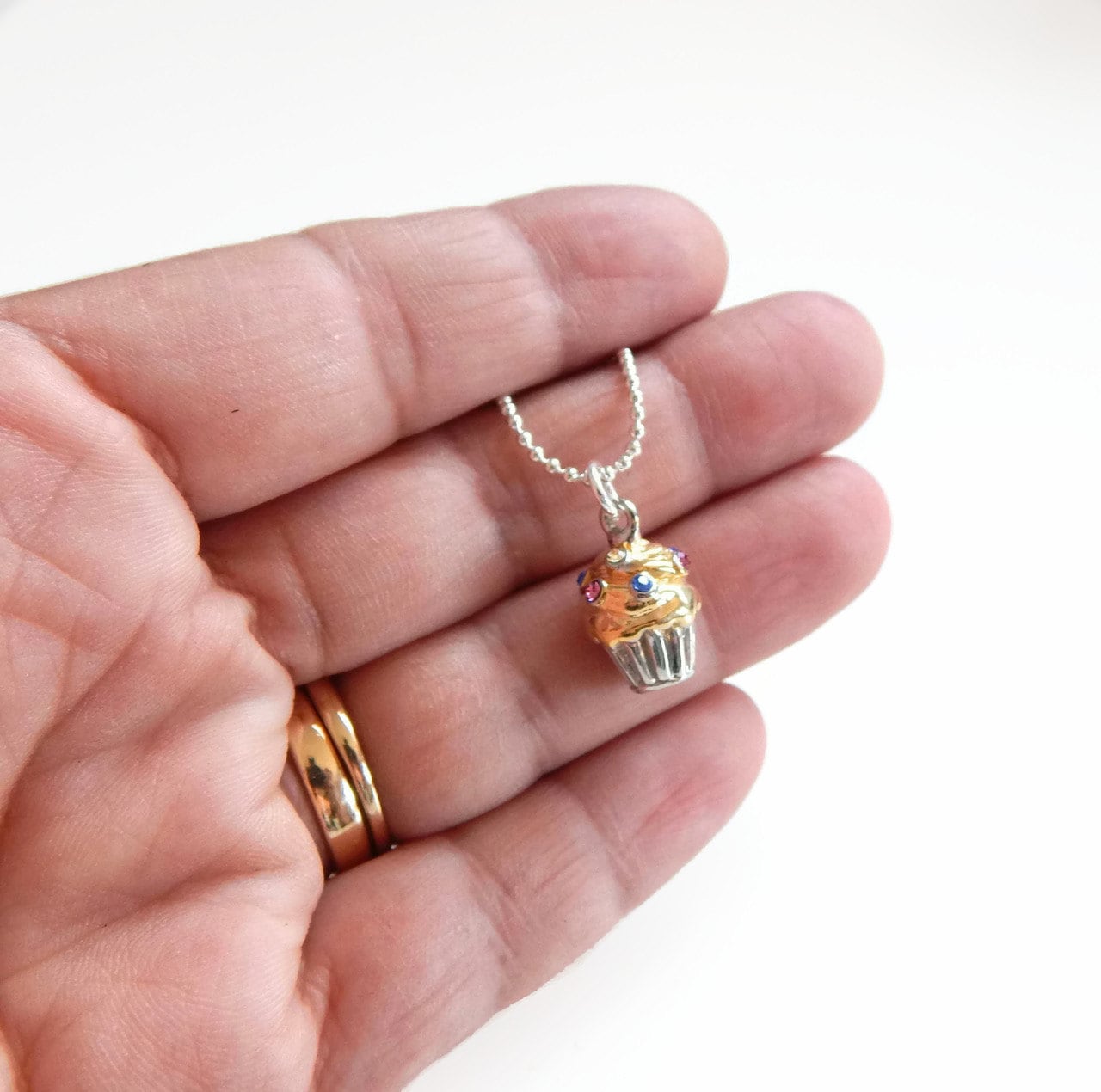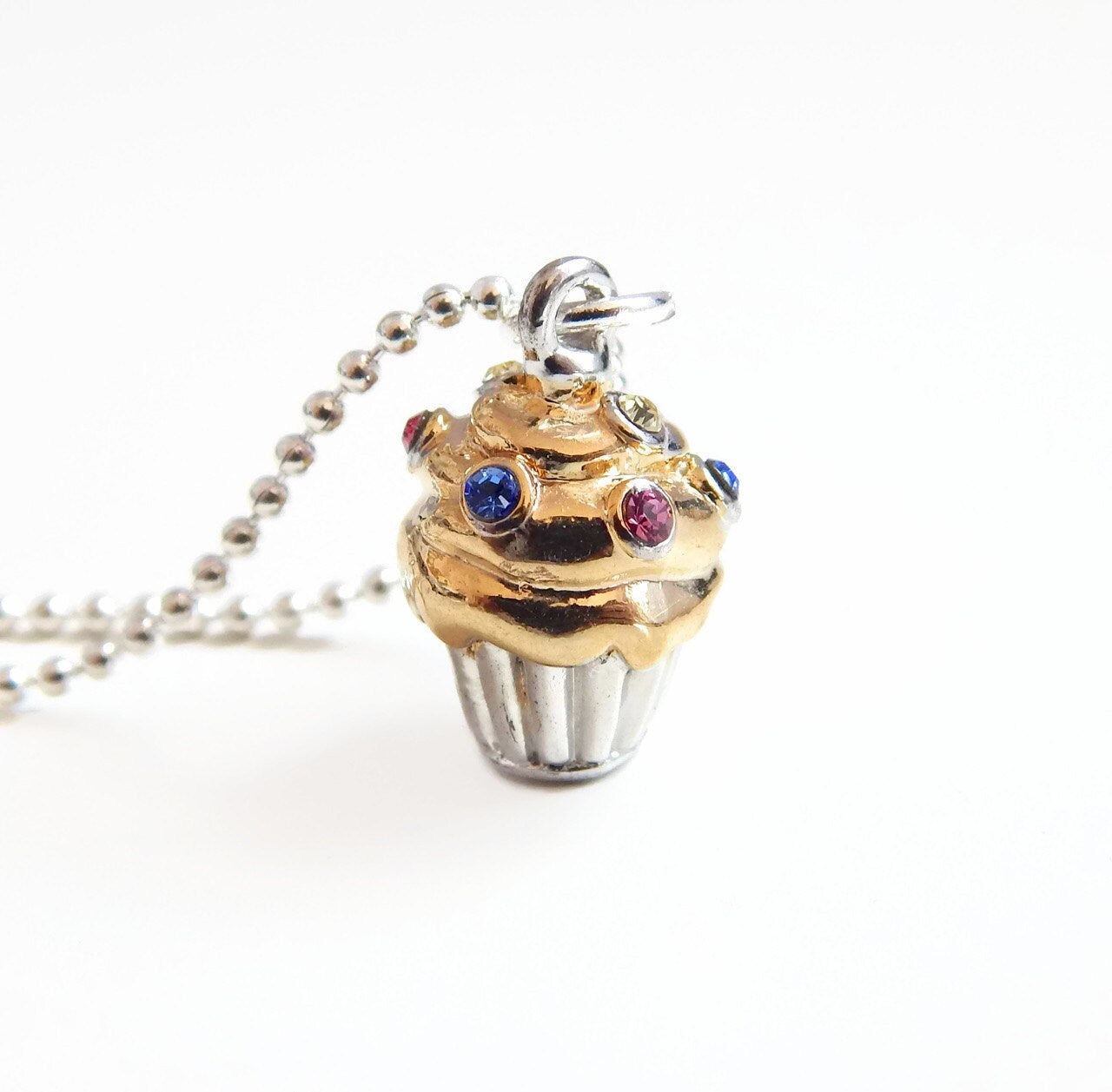 Gold crystal cupcake necklace