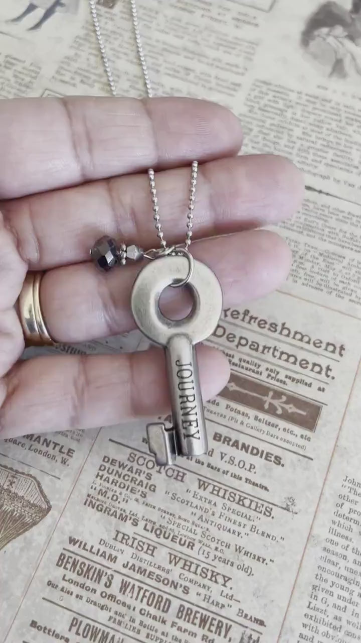 The Journey Skeleton Key Necklace is a delightful piece with vintage-inspired charm. The use of new skeleton keys that have a vintage appearance adds to its unique appeal. The fact that you loved the wording and weight of the keys indicates the thoughtfulness put into selecting the components.