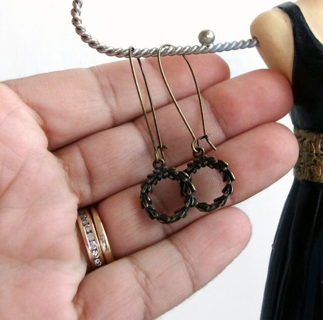 Lauren II - wreath earrings in antique brass - hoop earrings - graduation - brass wreath earrings - laurel wreath