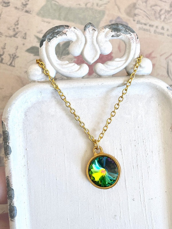 The shine and sparkle of the Swarovski Crystal rivoli are likely to catch the light and create a stunning display of colors. The rainbow crystal brings a vibrant and playful element to the necklace, making it a captivating accessory.