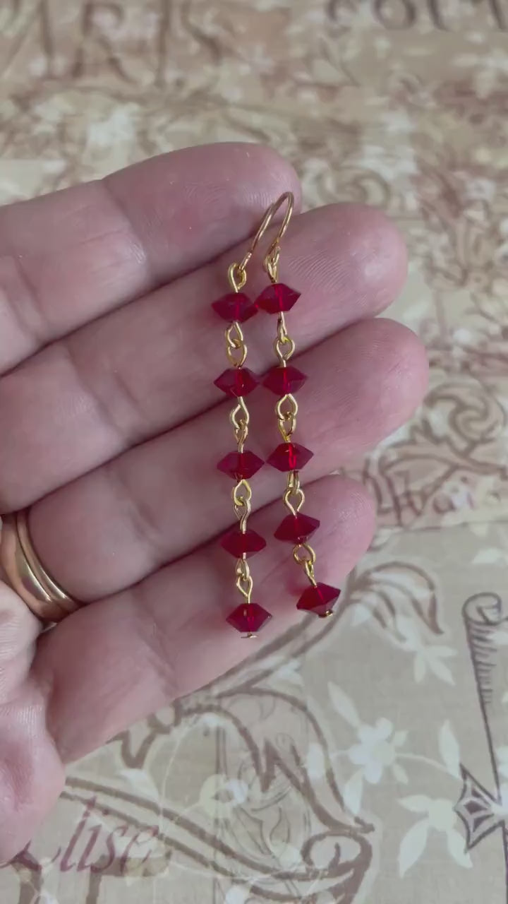 If you appreciate vintage elements, the combination of Swarovski crystals and gold tone wire adds a classic and timeless feel to the earrings. The dark red color of the beads can convey different emotions, such as passion, elegance, or even a touch of mystery.