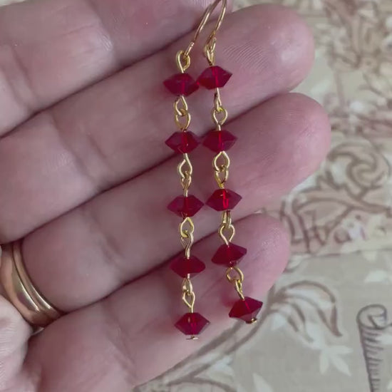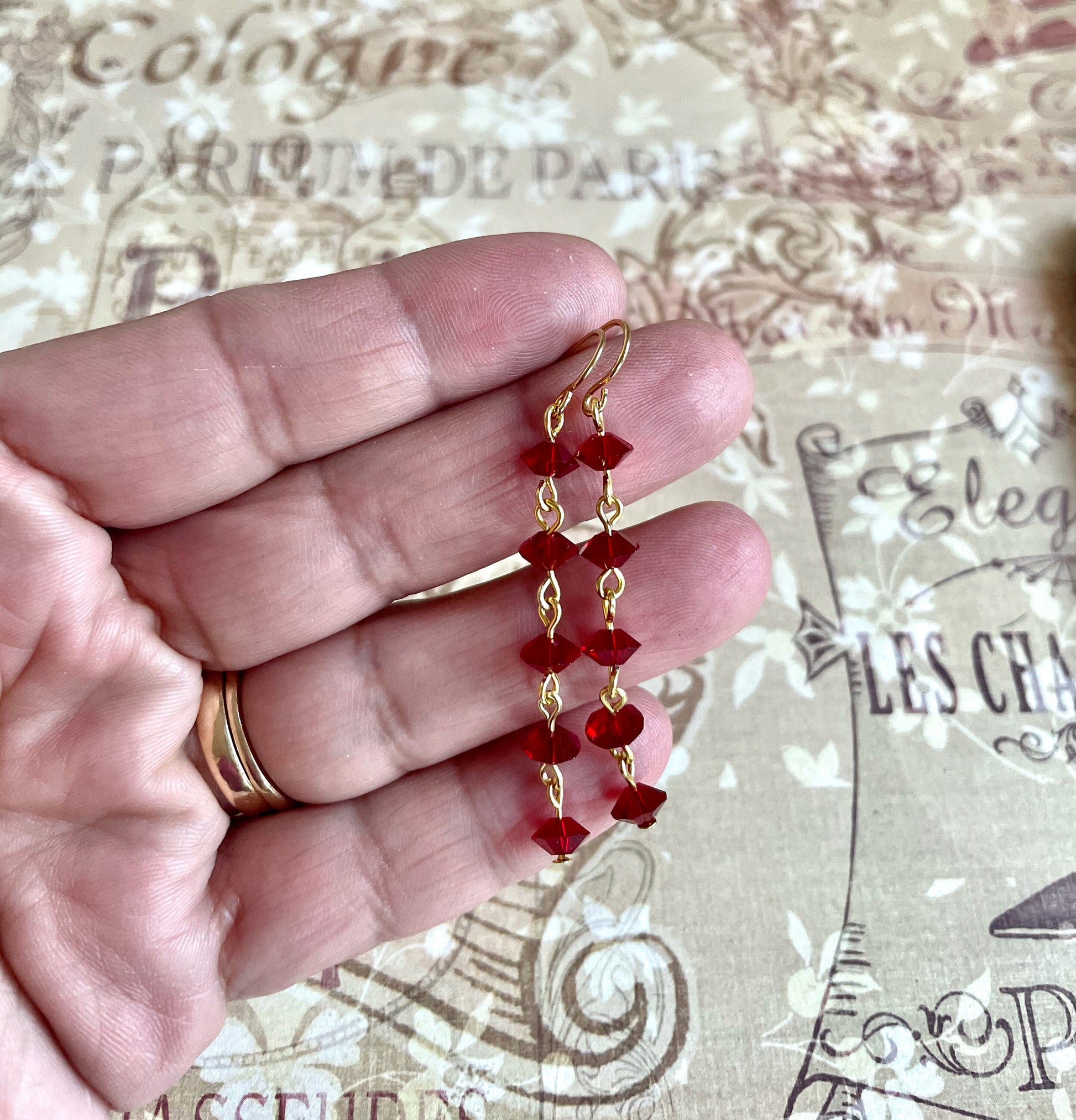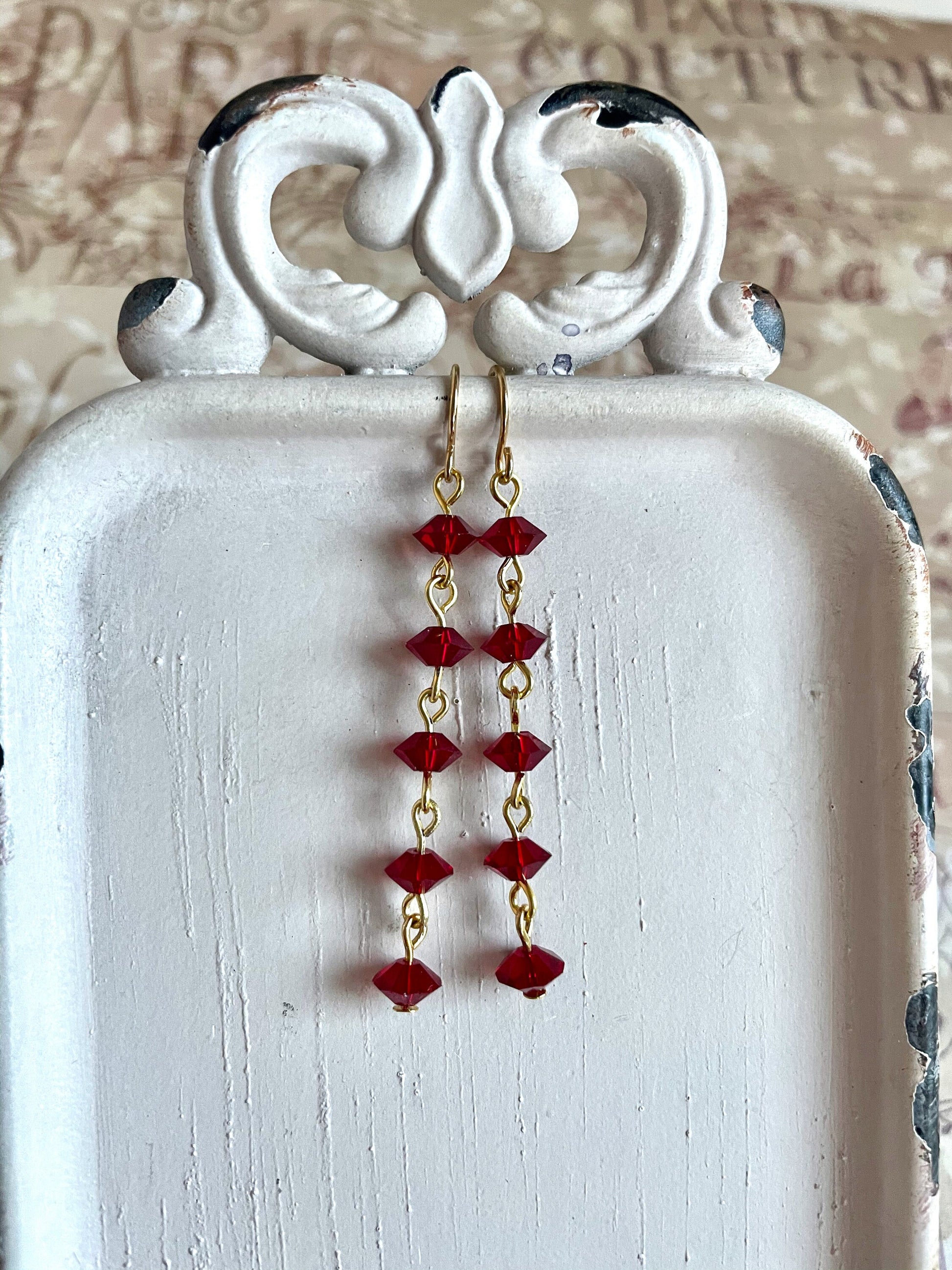 Red and gold crystal earrings made with vintage Swarovski crystal