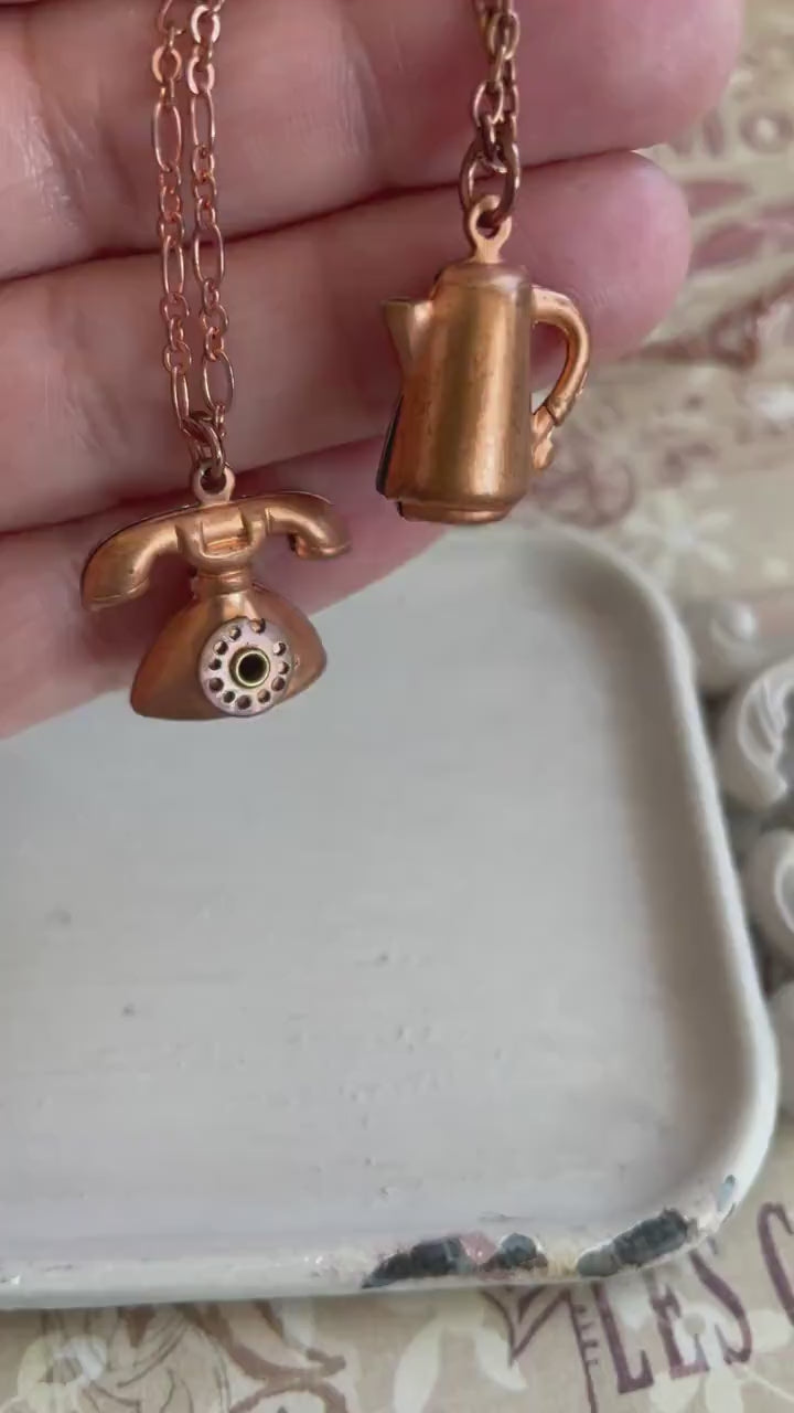 Relics of the past - Rotary phone or coffee pot charm necklace