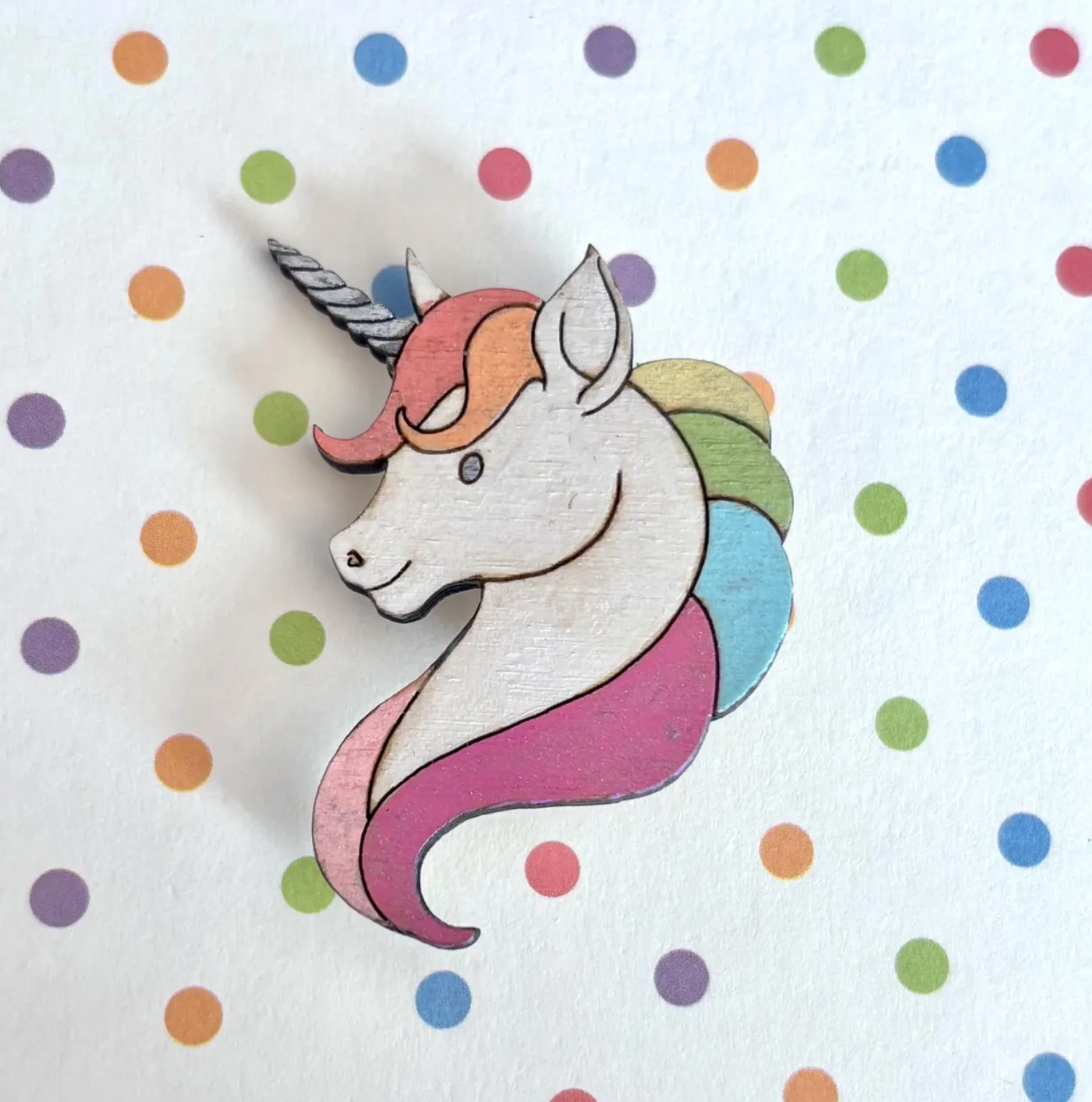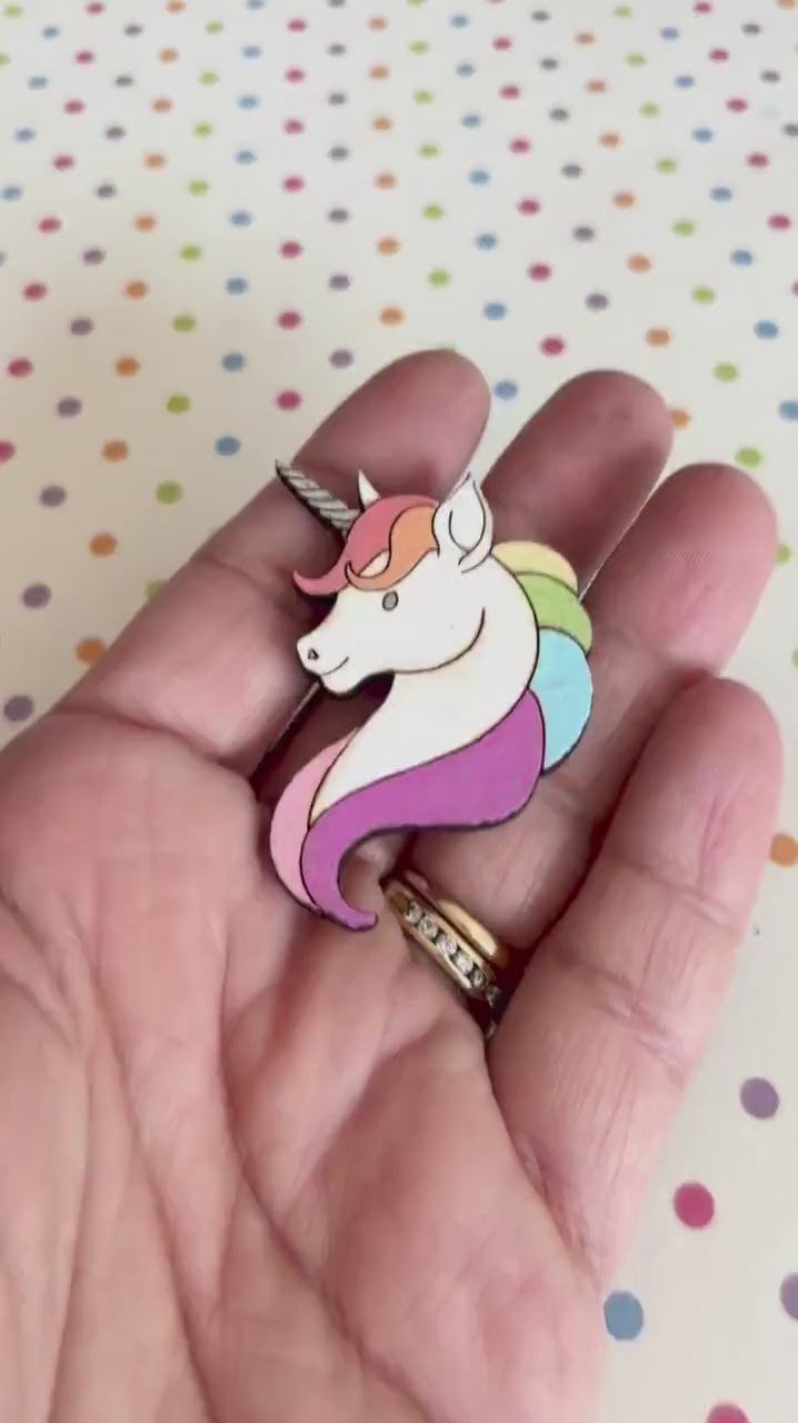 Bring a little magic wherever you go! Order your hand-painted unicorn head pin today and let your imagination soar.